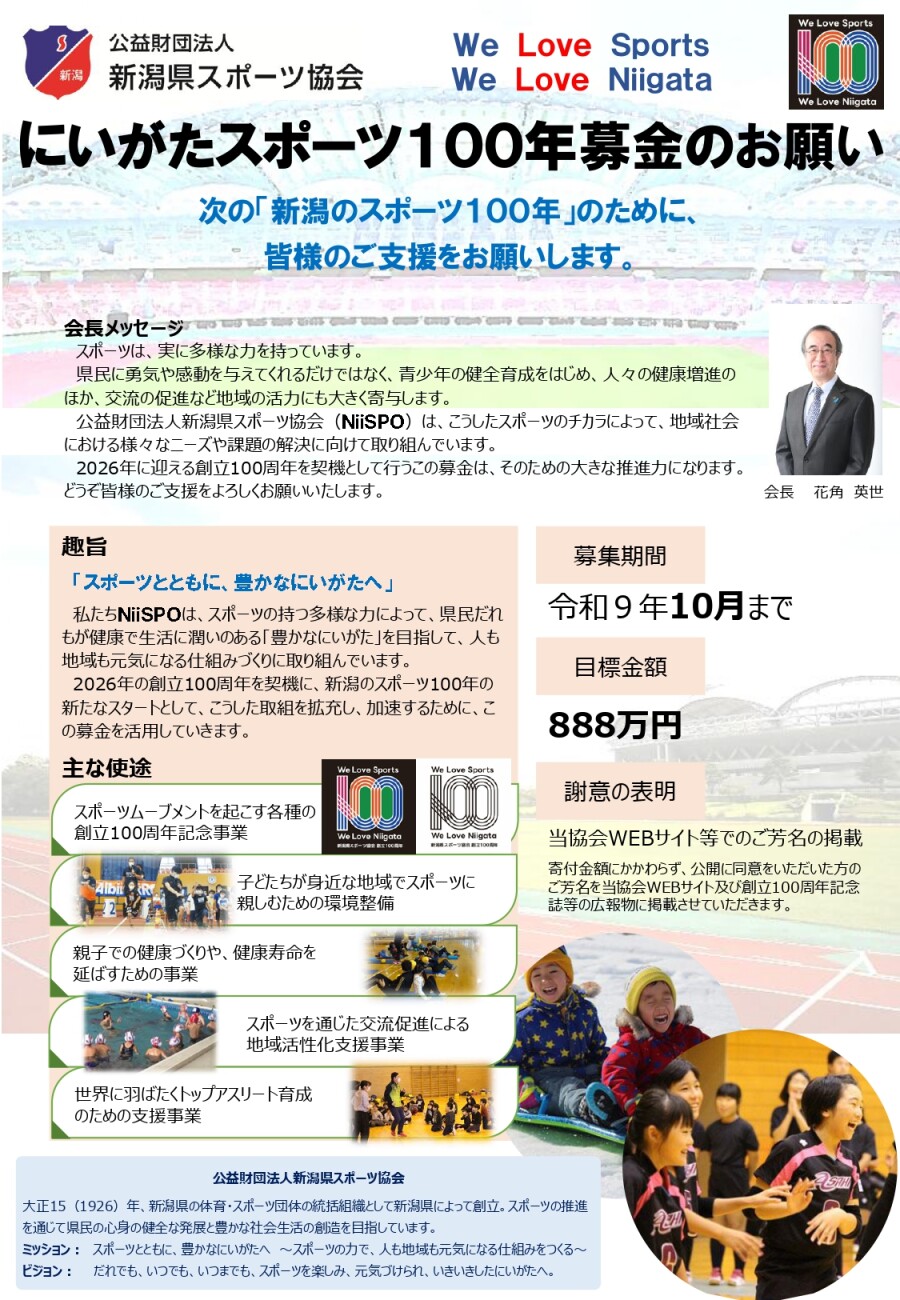 > 【新潟県スポーツ協会】創立100周年記念「にいがたスポーツ100年募金」のお願い