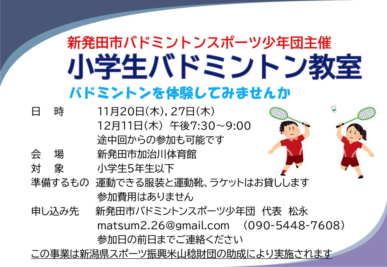 この事業は新潟県スポーツ振興米山稔財団の助成により実施されます