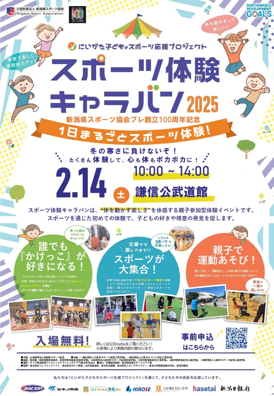 スポーツ体験キャラバン(新潟県スポーツ協会主催)の第4回目を、2月14日(土)に「謙信公武道館」で開催します。